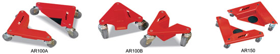 ● 此車基本用于搬運矩形貨物 ● 機動性強,用于無法使用大型搬運設備的場所 ● 用千斤頂翹起貨物一角.將此搬運器放在下面.如此重復每一角 ● 載物表面帶橡膠墊用于保護貨物 ● AR100A和AR100B是鋁制的 ●AR150是鋼制的 ● 搬運車的3個腳輪都為萬向角輪,轉向靈活 ● 成套(4個)銷售
