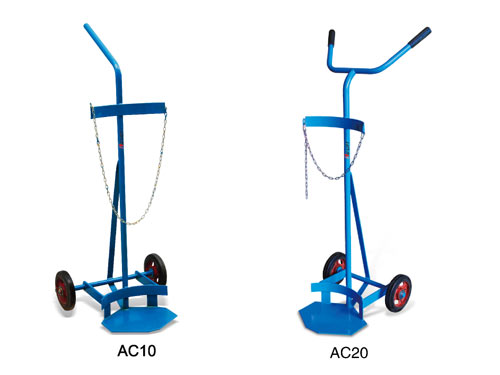 ● 裝載氣瓶的支架配有安全鏈條 ● 帶滾柱軸承橡膠輪