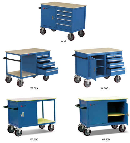 ● 采用18mm厚優質高密度板作為臺面 ● 抽屜采用滾珠軸承,每個抽屜都配有鎖,單個抽屜最大載后果20Kg ● 適用于生產現場、車間、維修間等工作場合 ● WL50B、WL50C柜內有二層可拆卸鋼板。剛距為190mm ● 抽屜寬度480mm,抽屜高度為二個'90mm,一個105mm,一個180mm